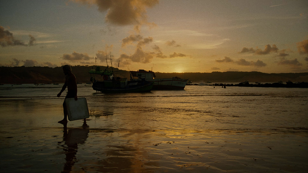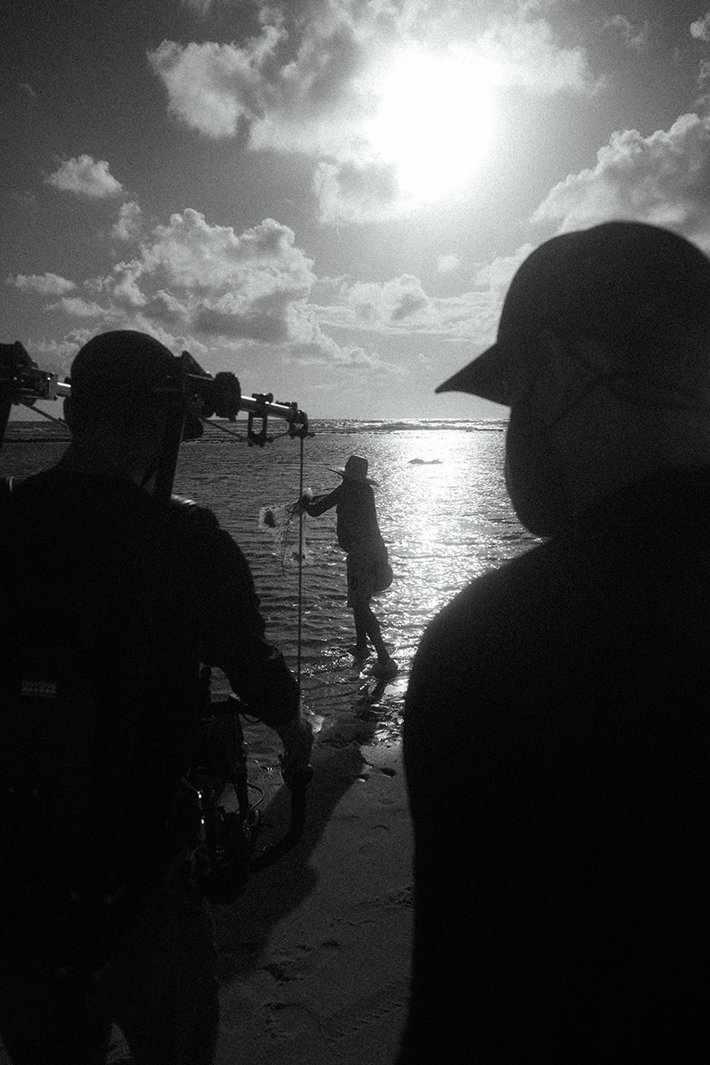 Durante as filmagens o sol nascia às quatro e meia da manhã e logo ficava bem alto, o que nos possibilitou a ter pausas no meio das diárias para não filmar com a luz muito dura. Nos primeiros dias filmamos o Ítalo surfando e um amigo dele, o Jackson, que surfou com uma tampa de isopor para ilustrar o seu início no surfe, uma coisa bem lúdica. Filmamos também a feira e mais alguns inserts da vila. As imagens da performance de Ítalo ficaram lindas, começamos super cedo e estava com sol entre nuvens. Tudo conspirou para as imagens ganharem uma força incrível. Usamos filtros Black Pro Mist de difusão, juntos com ND para limitar a profundidade de campo focal e glicerina.