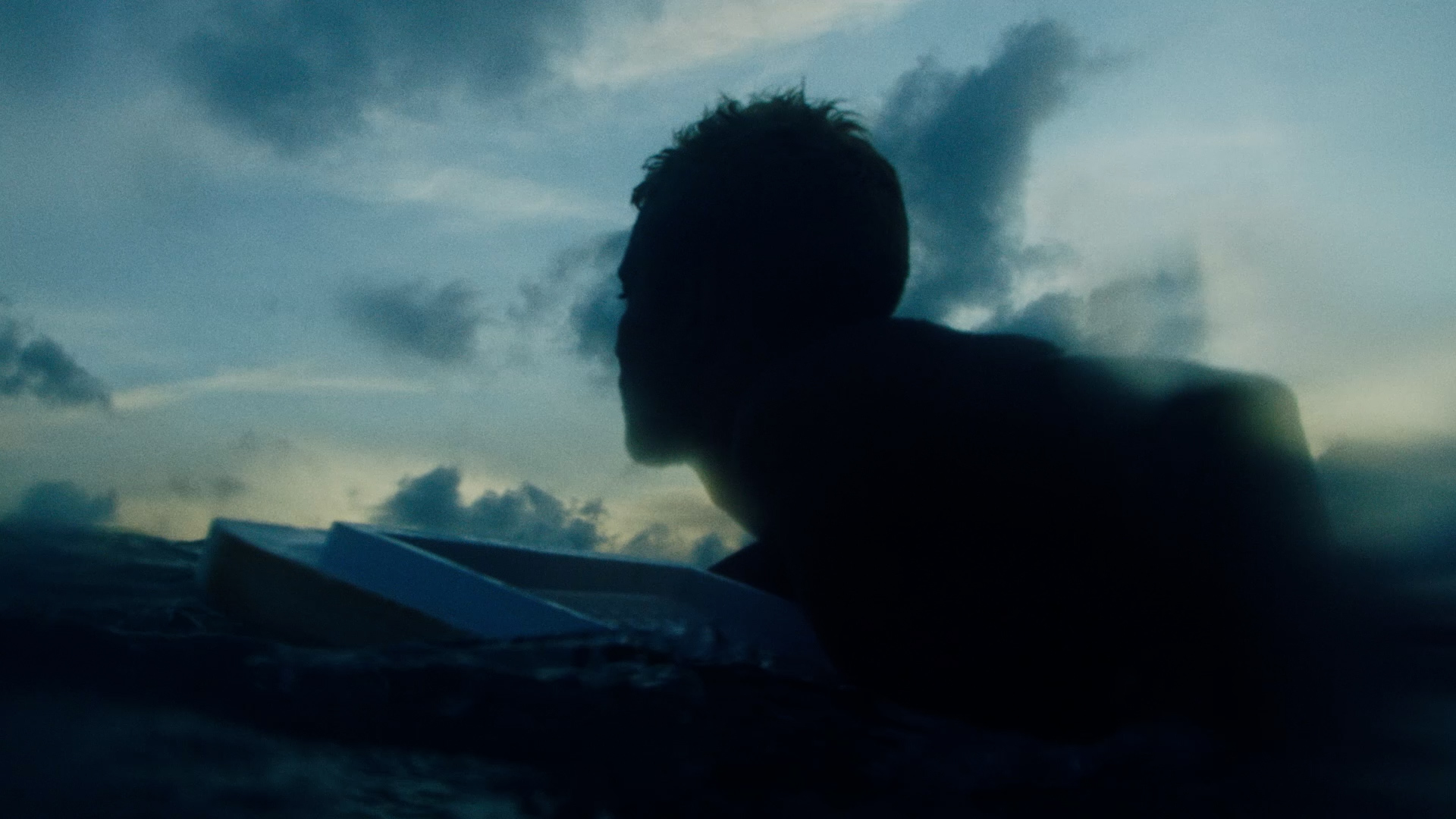 Na água a proposta era desconstruir o estilo dos filmes de surfe, com uma imagem mais suja, com um blur meio exagerado. Mantive a câmera na caixa estanque com esses filtros também para filmar Ítalo com os amigos na praia. Foi uma opção estética que eu resolvi arriscar para remeter a uma coisa do passado e lembranças.