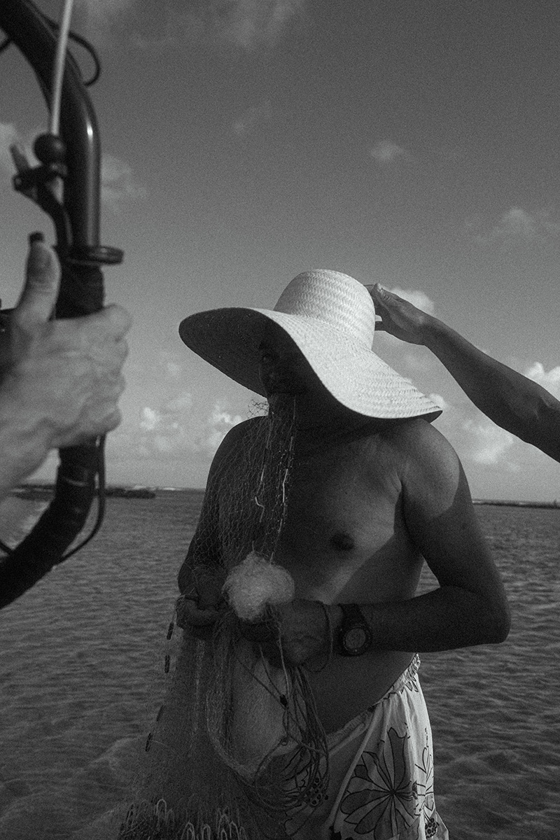 As cenas com o pai de Ítalo, que é pescador, foram filmadas em um barco em movimento. Usei a câmera na mão por uma questão de segurança e para conseguir mudar de enquadramento de modo mais ágil. Em alguns momentos, encostei a câmera no convés para acompanhar o balanço da água enquanto o horizonte se mexia.