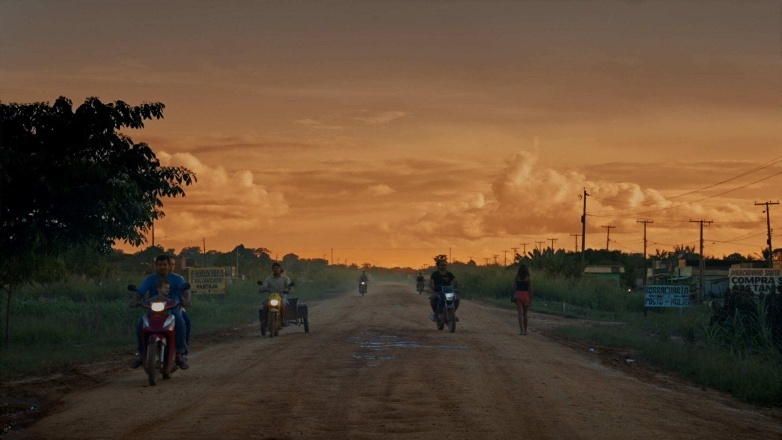 Sou de São Paulo. Não sou da Amazônia, mas o problema da floresta inquieta a todos nós. Acho que meu olhar de fora pode ser interessante. Me arrisquei a adentrar nesse território. Antes de filmar o curta, fiz três viagens para lá e conheci locais muito diferentes entre si, pois são muitas Amazônias. Em 2019, cheguei a fazer também um vídeo chamado “Cães Marinheiros”, que tinha o rio como cenário. Em “Curupira e a Máquina do Destino”, a paisagem é cortada por estradas de terra e não mais pela água. Foi através de “Iracema, uma Transa Amazônica” que o mundo viu, pela primeira vez, a Amazônia sendo destruída, na época da construção da rodovia Transamazônica. O filme estreou na Europa em 1974 porque foi censurado no Brasil. Resolvi trazer isso para o agora. Recriei as decupagens e os movimentos de câmera de algumas cenas. Reproduzi, por exemplo, com a mesma tipografia, o letreiro de um caminhão que aparecia no filme original, com a frase: “Do destino, ninguém foge”. Trabalho bastante com colagens, não só como referências, mas também para mostrar como essas realidades se acumulam. A música “Máquinas Humanas”, de 1973, toca nos dois filmes, mas no meu curta é uma nova versão, um brega cantado por uma mulher, Luzirene do Cavaquinho.
