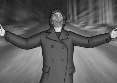 A carga dramática é o que determina as escolhas de cada cena. Os diferentes momentos exigem um determinado tipo de olhar. A câmera se movimenta por um motivo, não apenas pelo fato de ter a ferramenta na mão. Em “Desalma”, há uma mistura entre planos com câmera fixa, Steadicam e travellings pontuais. Planos subjetivos e câmera na mão foram utilizados com parcimônia, em momentos específicos.